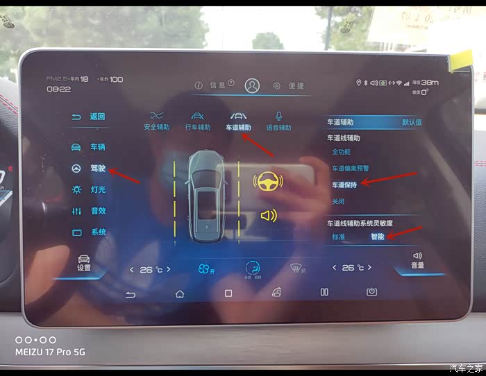 车道保持和自适应巡航真心绝配,中控屏点击设置,驾驶,车道辅助,车道保持(不建议全功能),调到智能就可以了(PS:开启车道保持不支持语音控制,应该是为了安全)