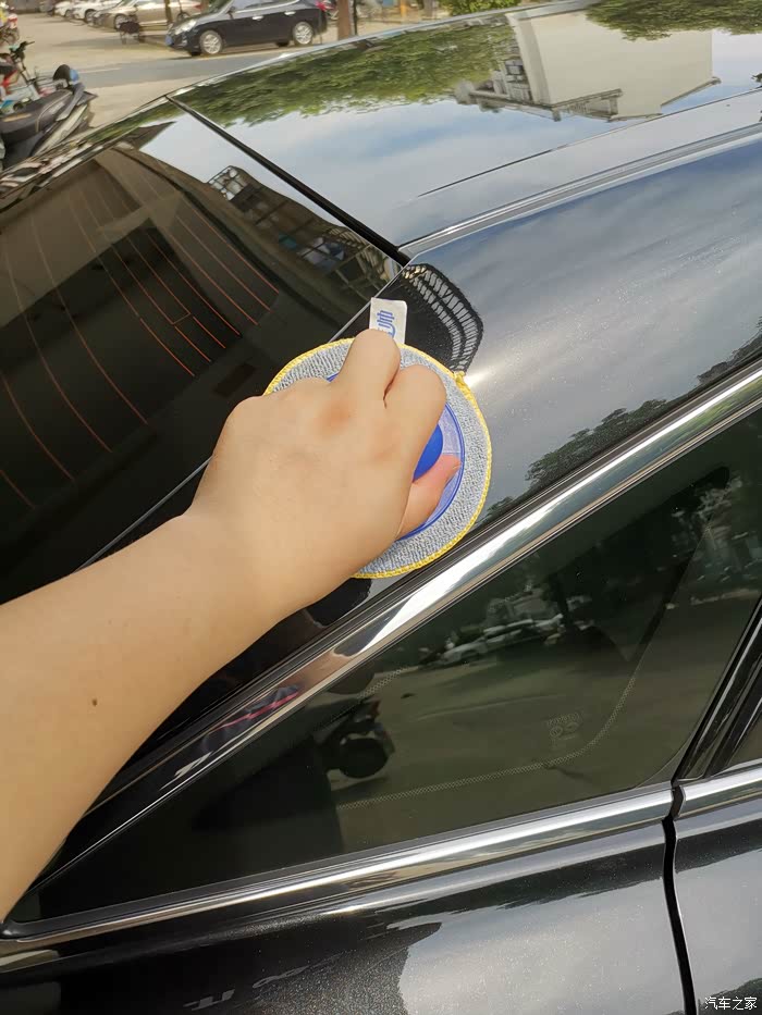 接下来就是打蜡,经常打蜡你会发现车子表面摸上去没有磨砂颗粒感,因为你每次洗完车擦干以后其实表面还是有点脏的,当你打蜡后你会发现打蜡海绵上是脏的,这一步可以更一步的去掉表面的脏和使车子看上去更滑更亮,定期打蜡是很有必要的,能使爱车一如既往的有光泽度!