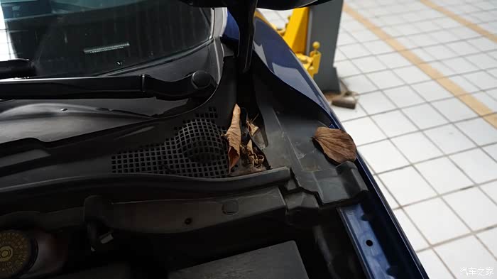 树叶堆积在排水口,必须要清理。车友们在保养时记得提醒师傅顺便帮清理天窗排水孔,不然天窗堵塞就会导致天窗漏水