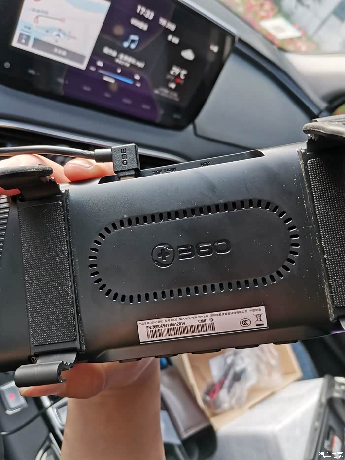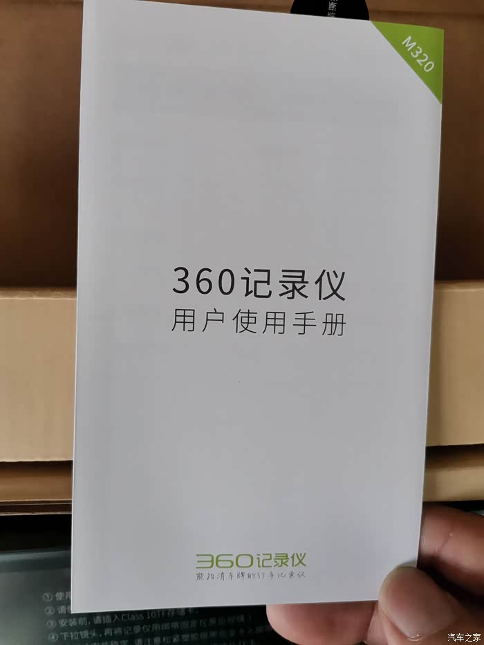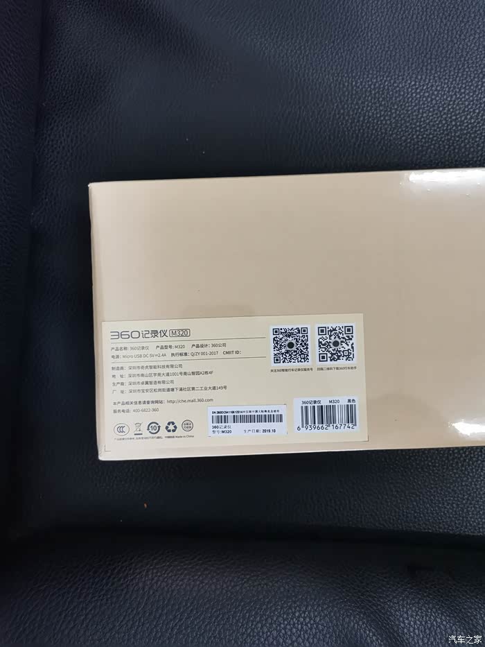 360记录仪M320型号,背面有各种产品信息