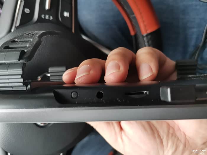 它不是触摸屏,按钮排列在下方,操作时很方便,上方是电源接口、TF卡槽及后摄像头的视频线插口。