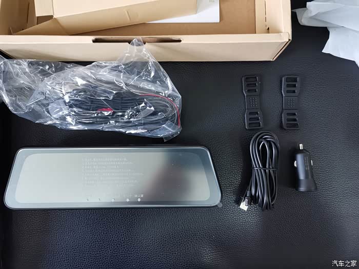 配件有电源线、后视摄像头、捆绑橡皮筋等