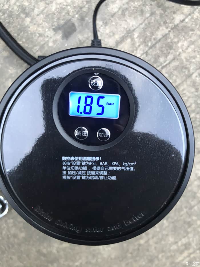 没过多久胎压就充到2.3了,其中工作时候的噪音还是比较小的,不会特别的大,但是有个比较大的缺陷,我设置的2.3胎压,到了以后居然没自动停止,还是一直加压,直到胎压达到2.5才停止,所以感觉那个加压和减压其实只是一个装饰作用,对整体并没有起任何作用的,这个厂家可能还是考虑不周到了