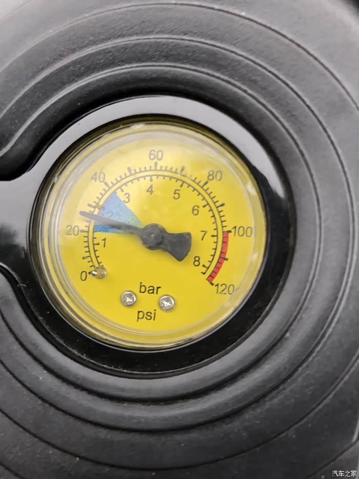 拧紧之后,针式的数显已经能识别到轮胎的胎压了,由于是指针式,所以读数上无法很精准