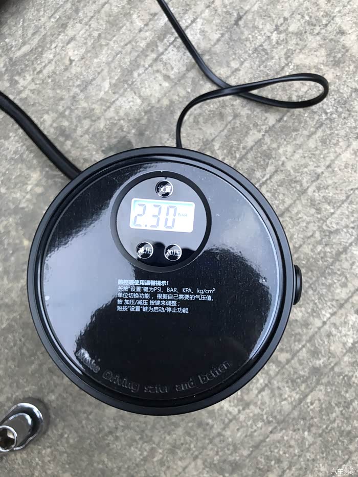 不用一会的功夫就充到2.3的胎压了,直接再按一下开关就可以结束这补气的操作了,非常方便