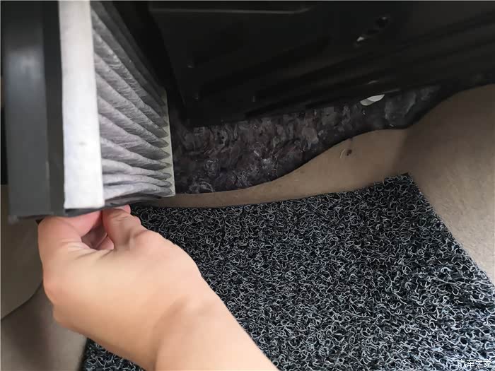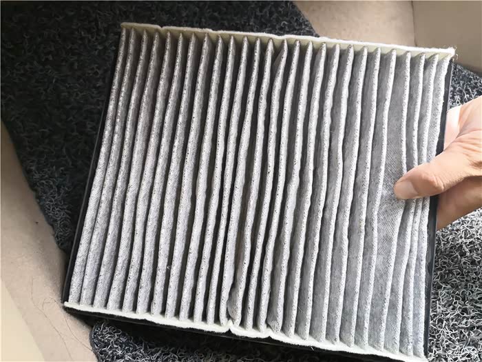 取出空调滤。看下空调滤,脏东西不是很多,得益于加装了外置空滤。