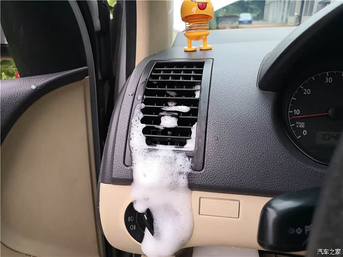 空调蒸发箱差不多了,然后从各个出风口喷点进去,把出风口的灰尘和细菌也清洗下。