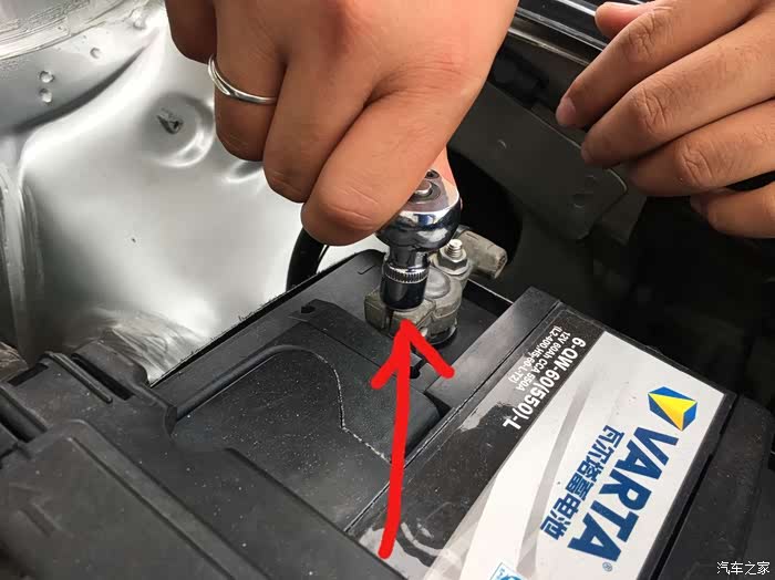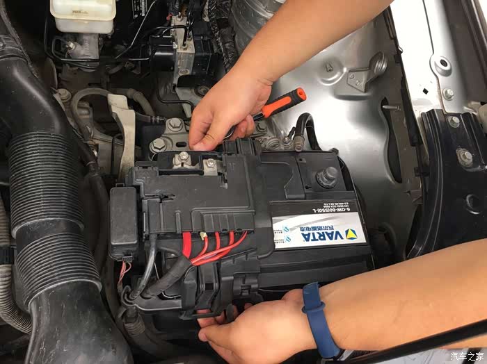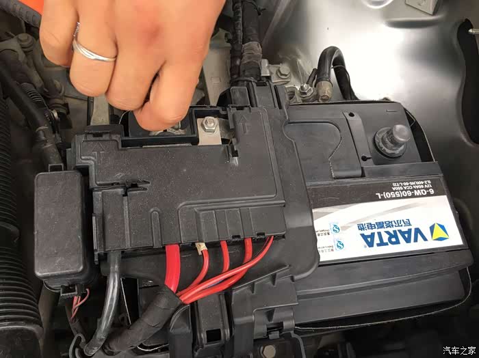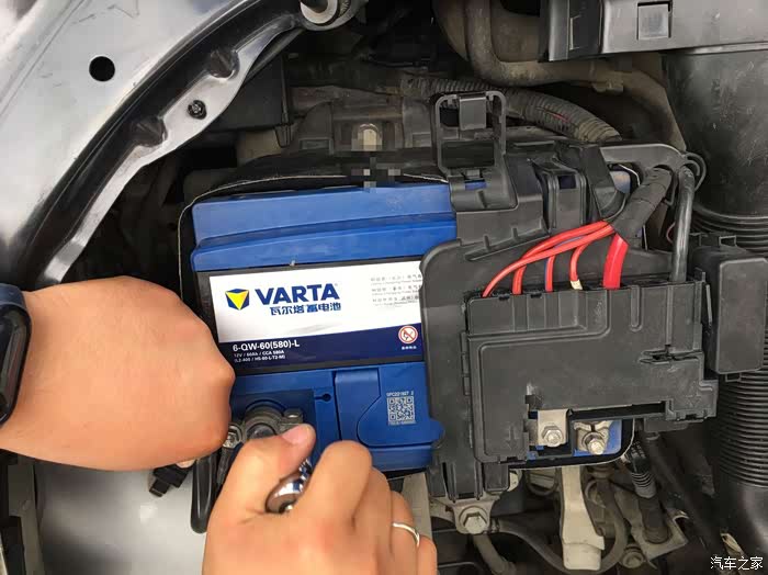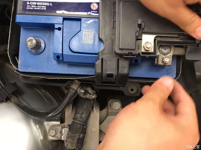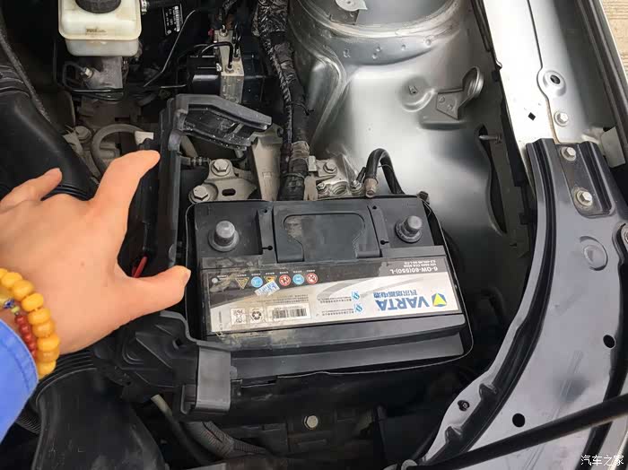 第二次更换电瓶由于工作的园区车辆管控,只好我再次搭电启动车辆,开出园区去更换电瓶。其实更换电瓶很简单,先将电瓶的负极拆下(正负极螺丝都是用10mm的套筒),然后将正极拆下。再用13mm的套筒将底座的固定螺栓卸下来。再将电瓶的固定卡扣(左右各一个卡扣)扳开。就可以将电瓶取出来了。那么安装新电瓶就是以上顺序的反序。