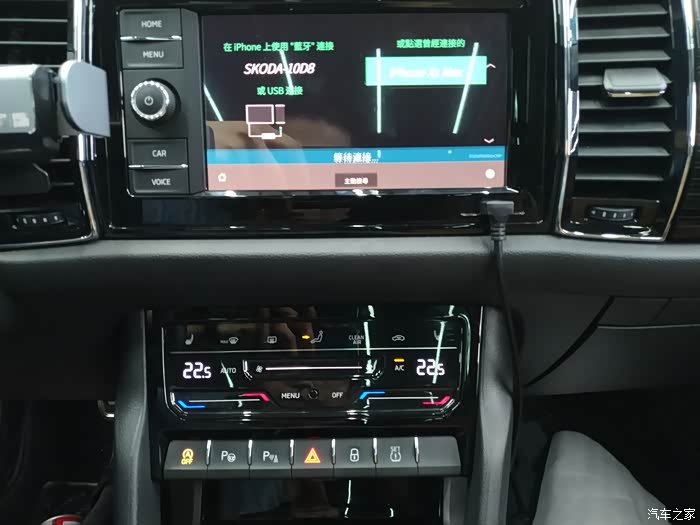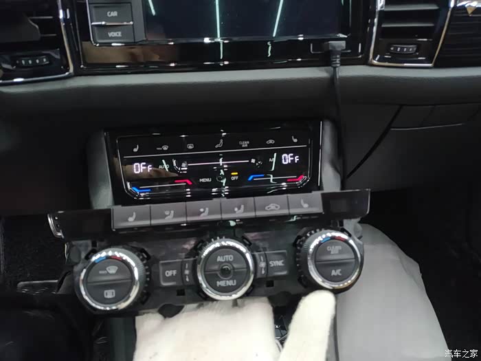 保养结束还别忘了保养灯归零和胎压灯复位!下工位开始安装液晶空调面板,先把空调面板外部一个饰板拆了,右边直接撬开,左边下部一颗T20螺丝,拿开空调面板,安装新的液晶面板,上车后效果真不错,然后接上5054开始编码,压缩机首次运行,完工!