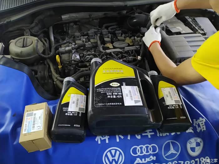本次保养更换机油机滤,基础保养,更换上汽大众原装嘉实多黑钻0w40全合成机油和原厂机油滤清器