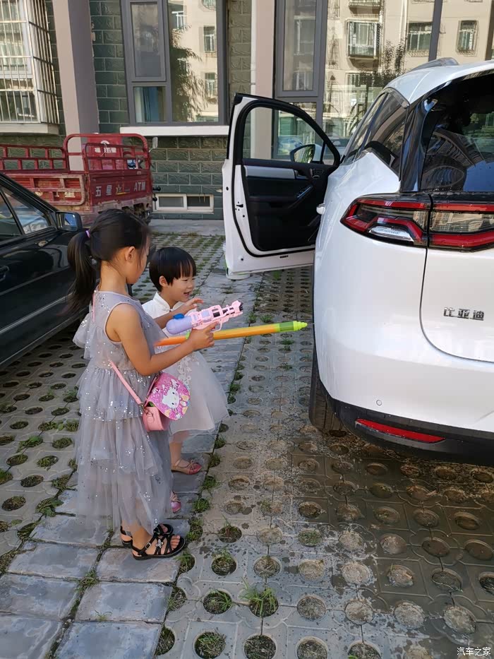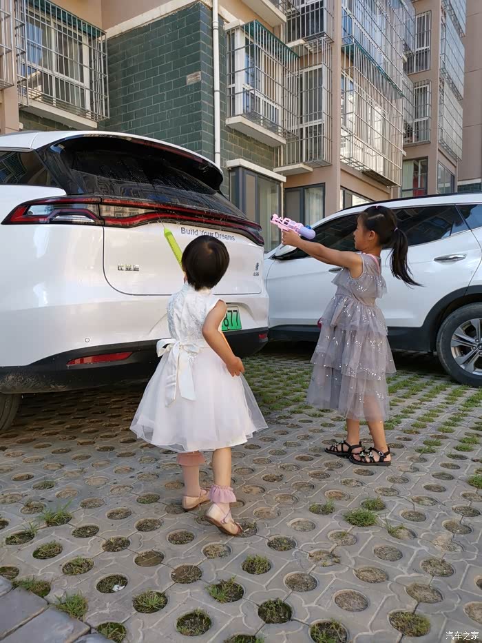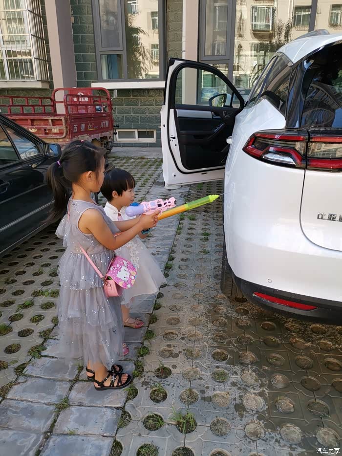 闺女的小伙伴也来助阵,一人拿一个水枪开整
