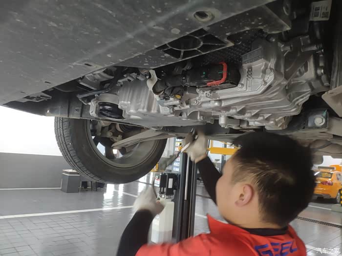 维修技师检查底盘、螺丝有没有松弛,其他零部件有没有损坏。