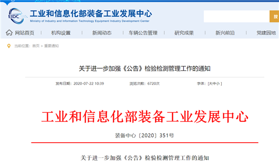 对此,工业和信息化部装备工业一司发布关于进一步加强《公告》检验检测管理的工作部署,有关要求通知如下: