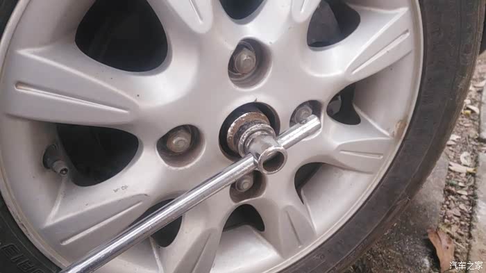 拧松30#大母和4颗轮毂螺母,不取下,轮子在车上更安全。然后钻车底拆半轴。
