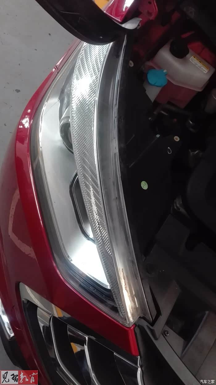 离合器总泵更换完成,发现右前大灯总成的密封胶条已经开胶,为了造成以后的大灯进水,要求4s店给处理了一下