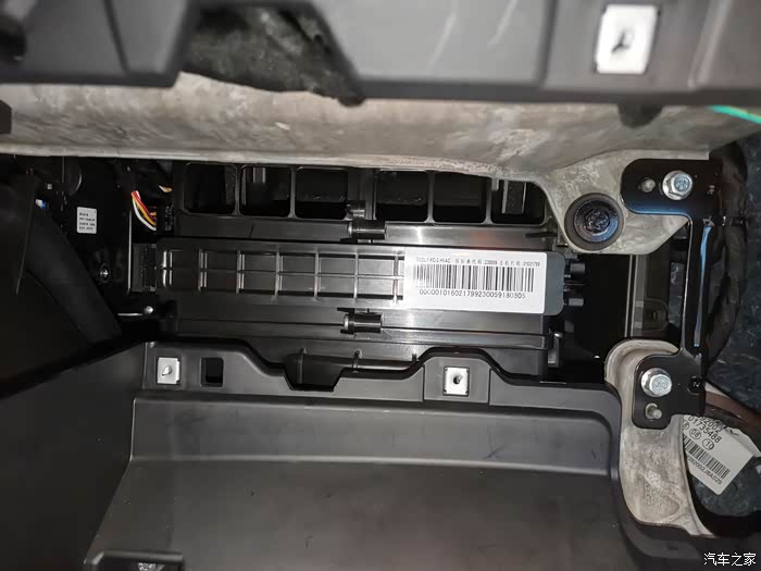 手套箱拆完,眼前的就是这块挡板,空调滤芯就在它后面,总共6颗螺丝,拆下来即可将挡板取出