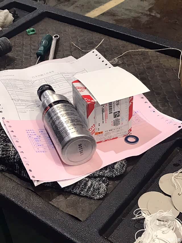领取好材料:垫片,机油滤芯,0-20的机油,还有一瓶喷油嘴清洗剂,这些都是在免费保养的范围之内的,不需要人工和材料费。