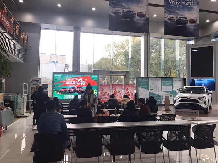 因为是年底的时候,天气比较冷,大家都穿着羽绒服,没人还发了一些水果小吃,这方面现在4S做的还是很到位的。