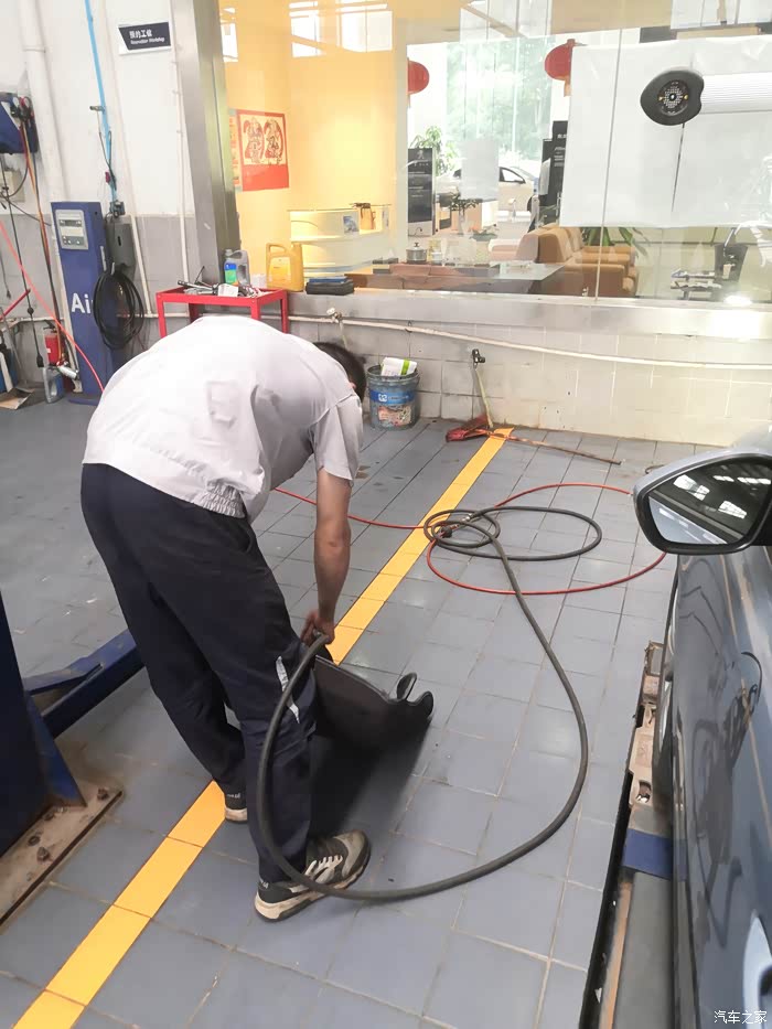 全部做完,车内开着空调做空气循环,师傅帮我清洗脚垫