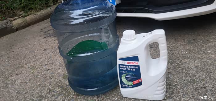 这个水桶是家里饮水机的,里面还有半桶纯净水,老婆骂我疯了!防冻液我选的博世的,大牌的放心!