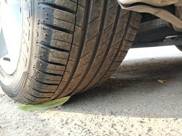走着走着发现左后轮报警,胎压不正常,看来被扎了。分析可能停车不规范,不过也不能完全断定,必定没有看到