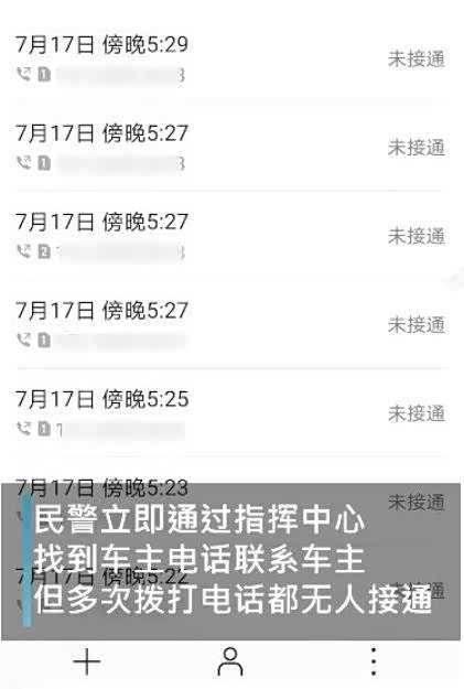 随后民警立即通过指挥中心,找到车主电话并联系他,但由于车主没带手机,交警多次拨打电话都无人接通。