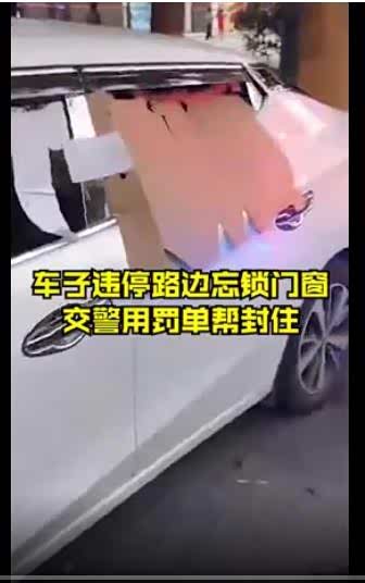 此时交警灵机一动,他们在路边找到水果摊老板,用水果店的纸箱做成纸板并用前车门夹住纸板,交警又将两张空白罚单,贴在了固定处,给车主的前后车门上了“封条”,最后交警在车窗旁边贴上了罚款100元的罚单。