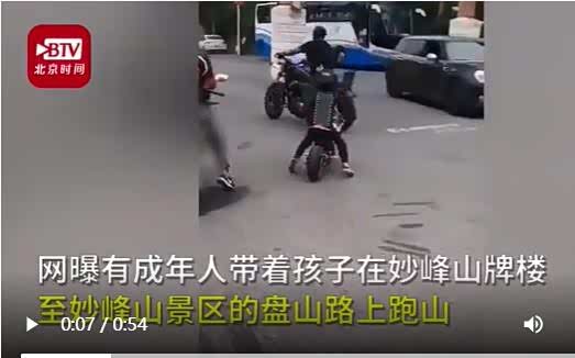 网曝北京一未成年人骑迷你摩托车跑山#7月26日,网曝北京门头沟有成年人带着孩子在妙峰山牌楼至妙峰山景区的盘山路上跑山。