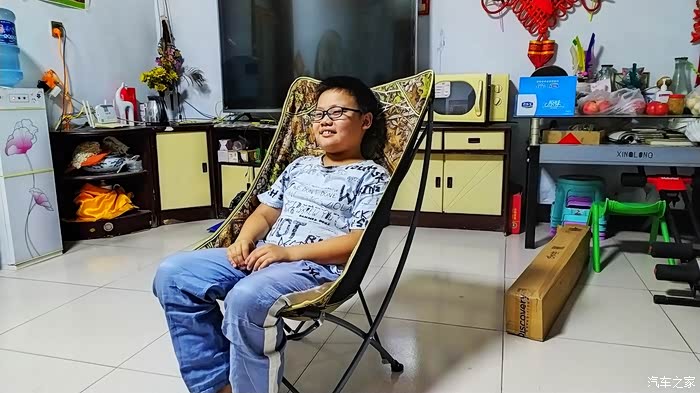 通过孩子体验表情可知这款月亮椅确实很舒服。