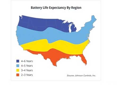 之前发过的图,江森自控给出的美国本土电池预期寿命。我这里一般电池能用4-5年,我这7年算是够本了。