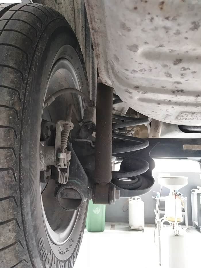 左后,驾驶位后轮得减震器漏油,保内给免费换一个