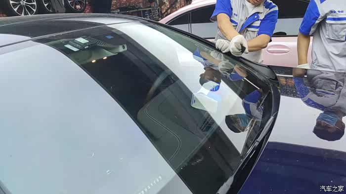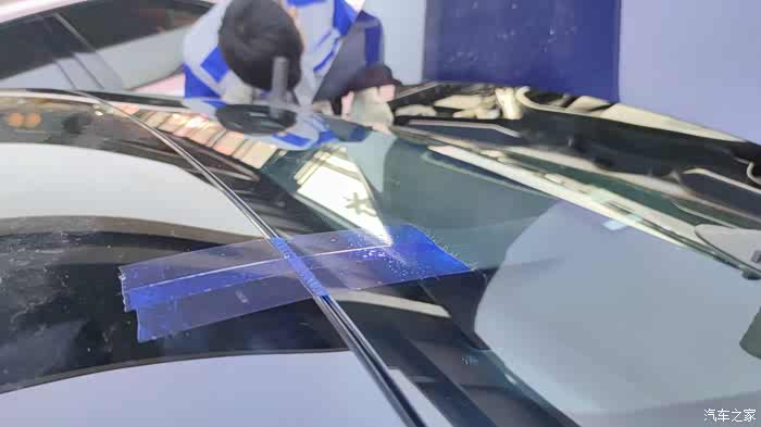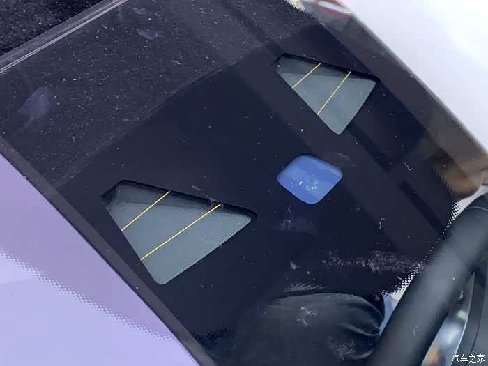 需要再次把胶层剔除到越薄越好 装车封胶就不多费篇幅了。来看看新玻璃前摄像机开孔位置,就是这两个三角窗