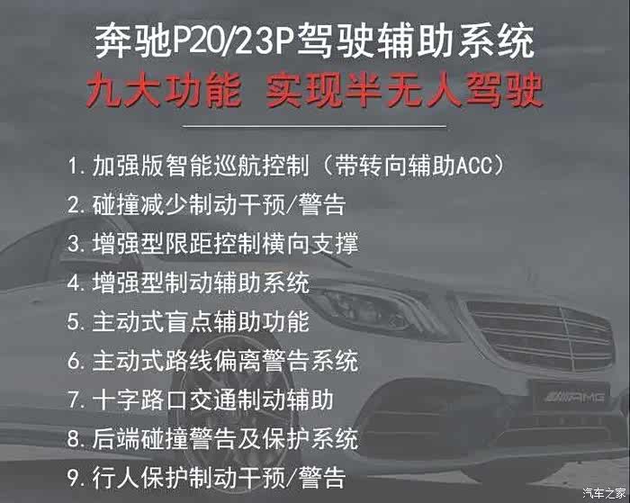 奔驰新E级驾驶辅助系统,23P!可以实现自动加速,减速,刹车,变道,已经接近无人驾驶功能,包含了九大功能!不管是无聊的高速,还是拥堵的高架,都会让开车变得轻松很多
