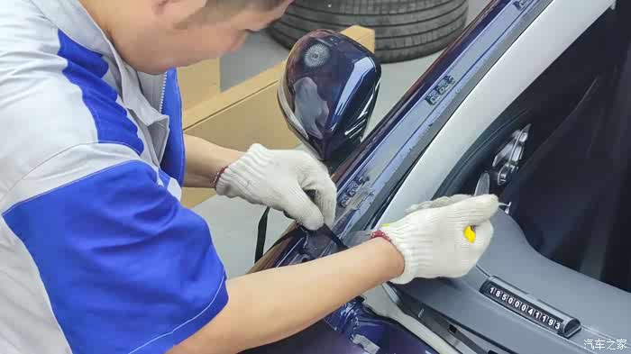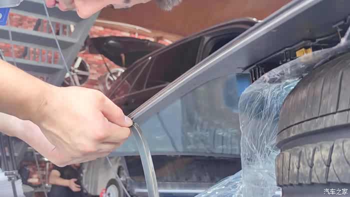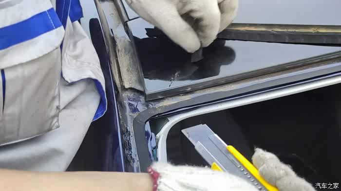 安装前的准备工作,先把上沿的原车密封胶条粘上去