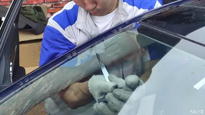 都说奔驰用料不讲究,我看八成不少是车黑。这前风挡必须要用钢丝把胶拉断。市面上大部分车型用翘板就可以。因为奔驰前风挡的玻璃胶太厚而且很均匀(福X师傅告诉我的)