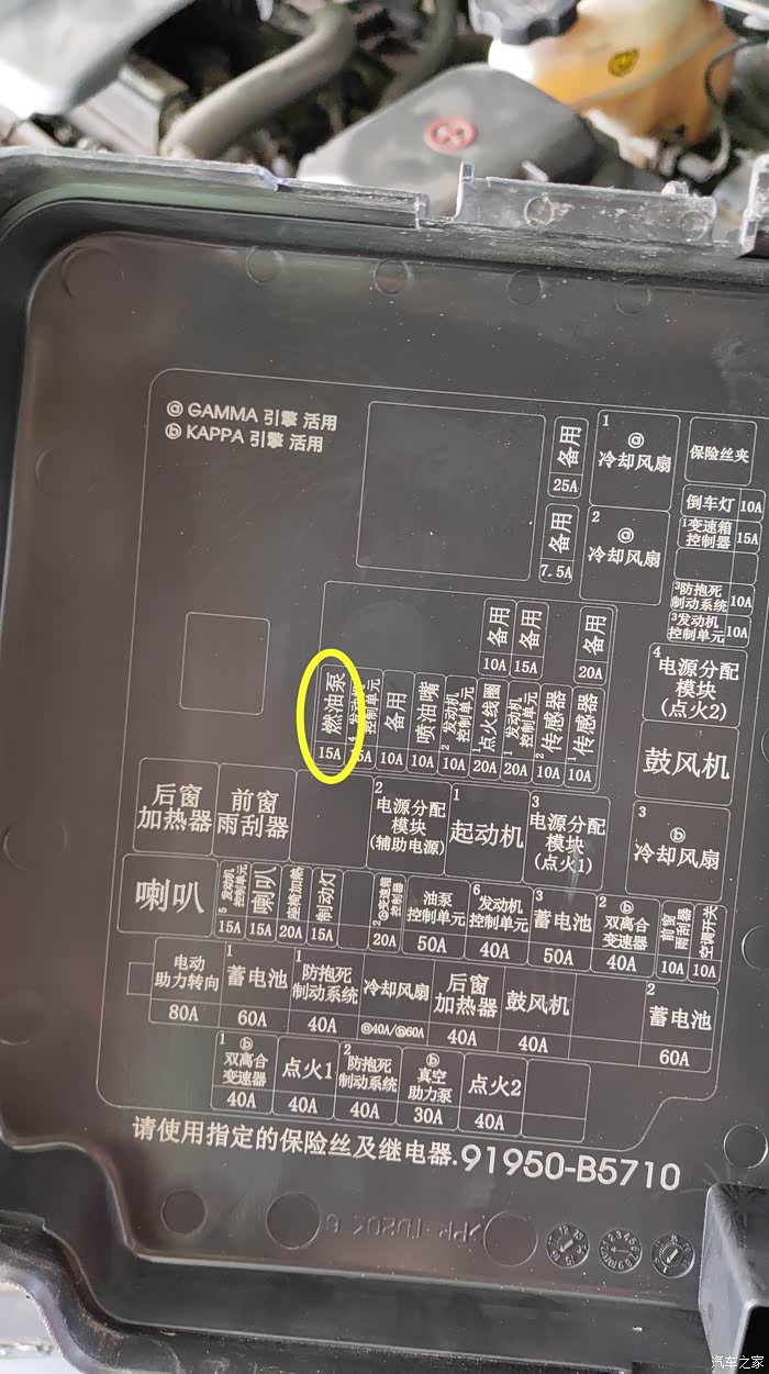 保险丝盒的盖子上面也有标注各个保险丝的具体位置,注意一下不要弄错了。