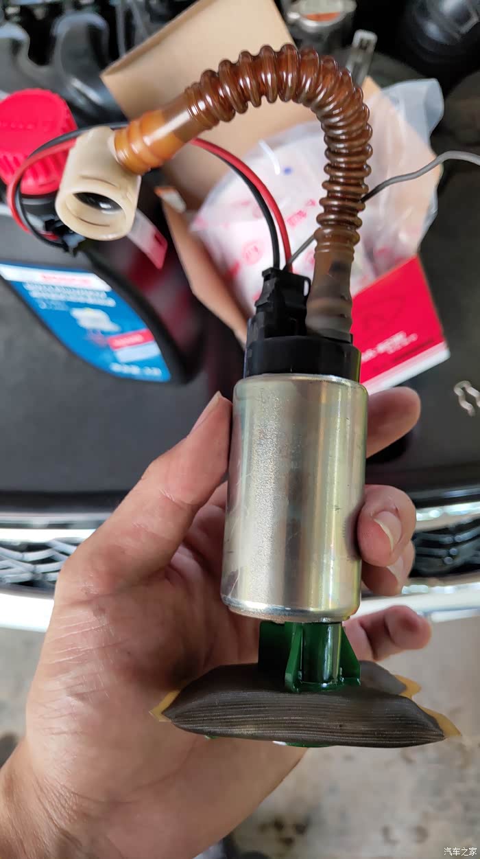 取出来之后忘了拍照,用这个换好的补拍一张,中间黑色的是燃油泵的电机,按照图中说明就可以把电机和滤芯分解开来。