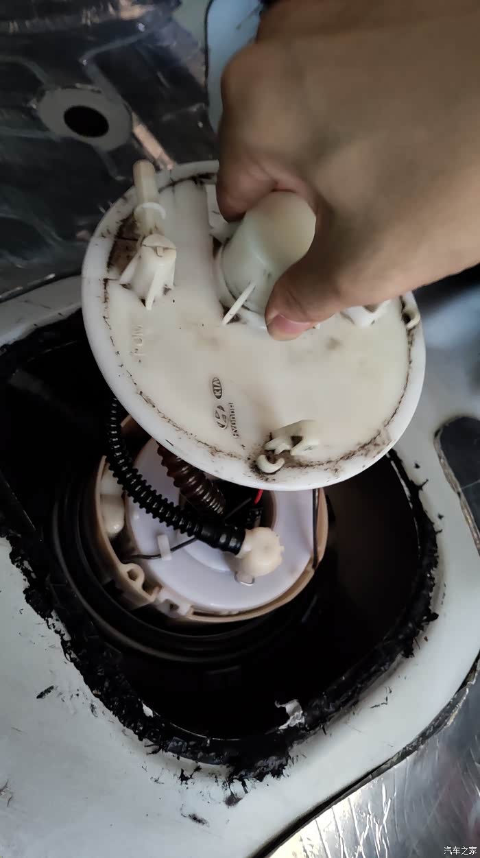 然后就可以小心的把燃油泵总成提出来了。