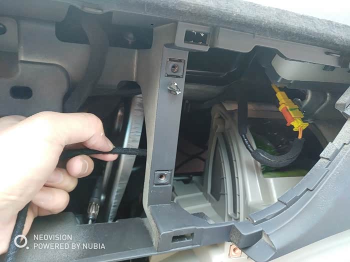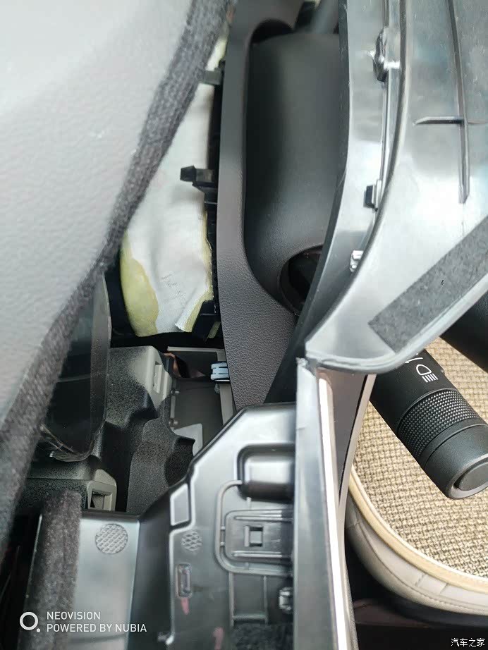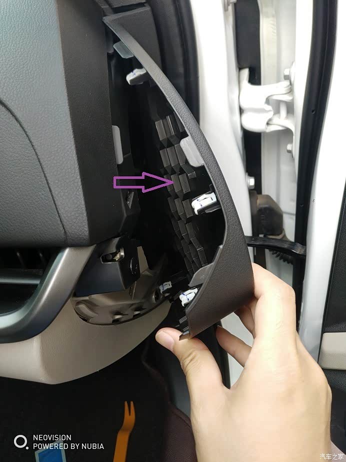 拆下副驾驶A柱内饰板,从顶部慢慢拽开就掉了