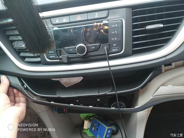 这是安装完毕的状态,线束比较多都塞进中控里去了。