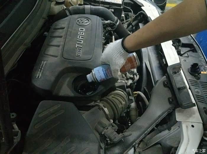 打开盖子,直接加入,怠速15分钟后把车子架起来,放掉