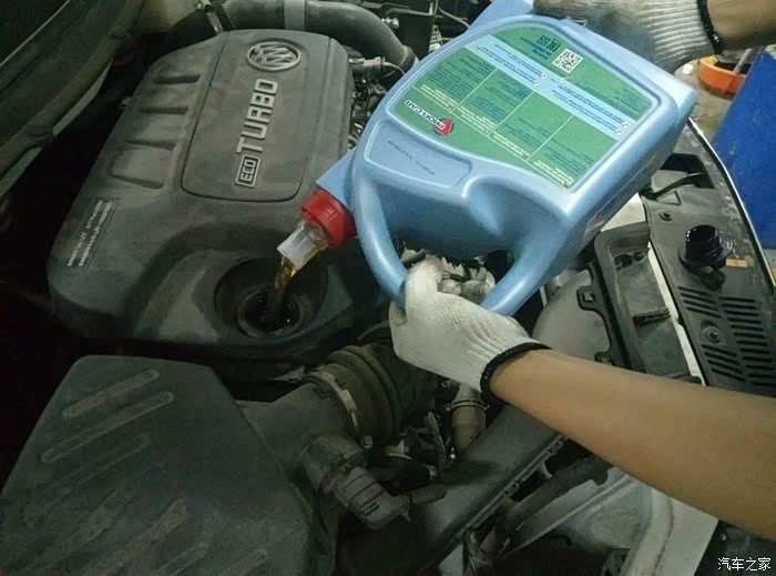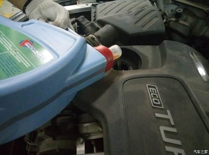 旧机油放干净,机油滤芯也安装完毕,接下来就是加入这次的主角,德国·保菲机油了,不要加太多,要留出一瓶添加剂的量