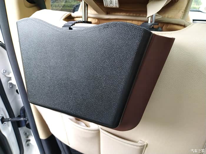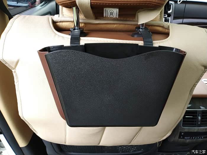 上车安装一下看看吧,先用挂钩来看看,这个是要挂在座椅头枕上的。