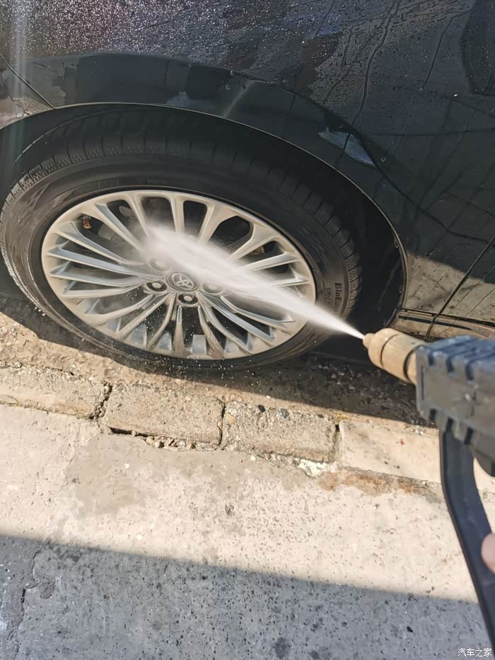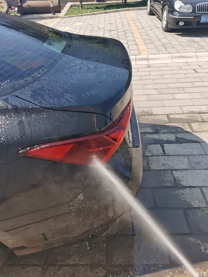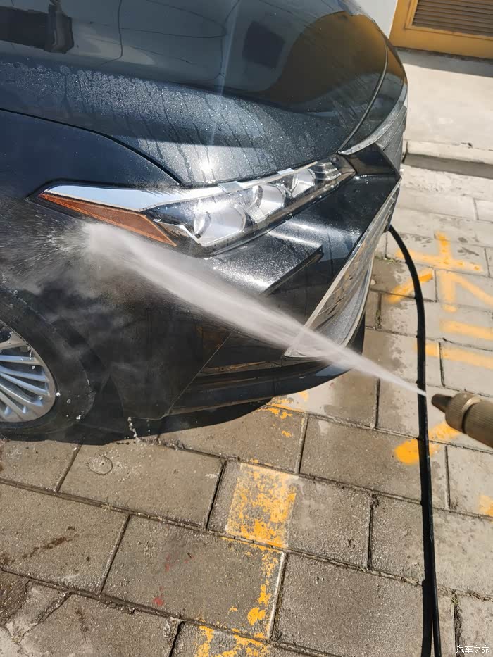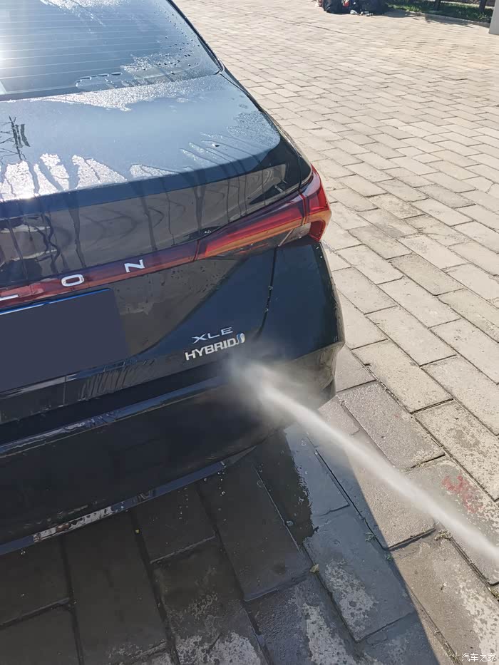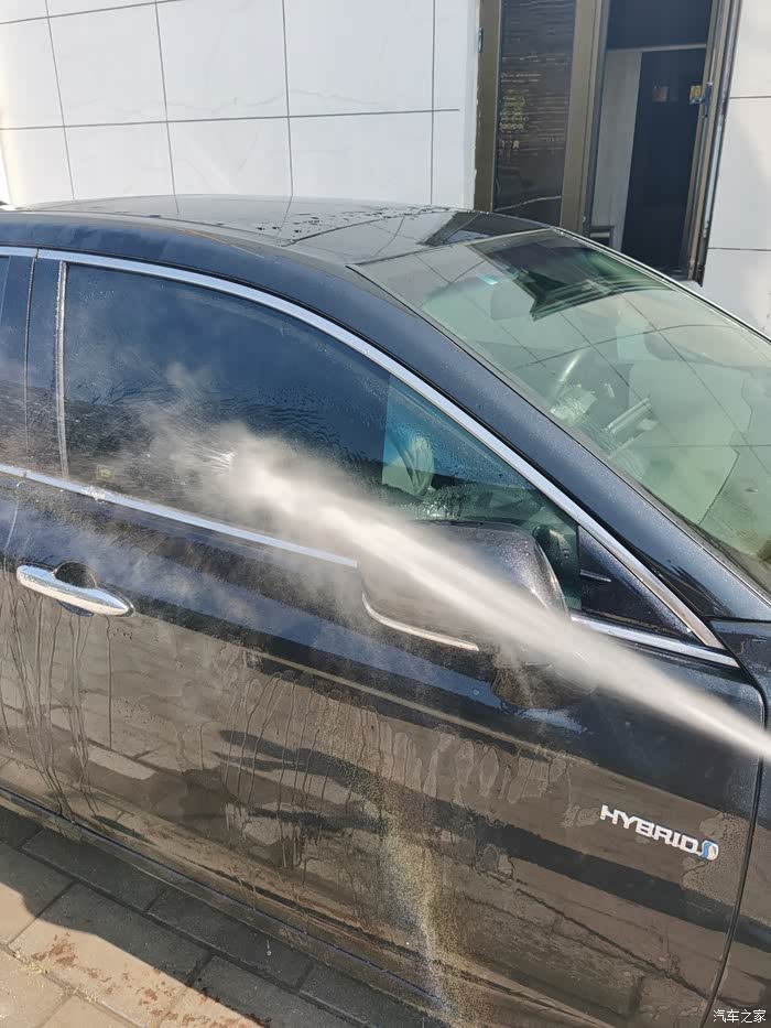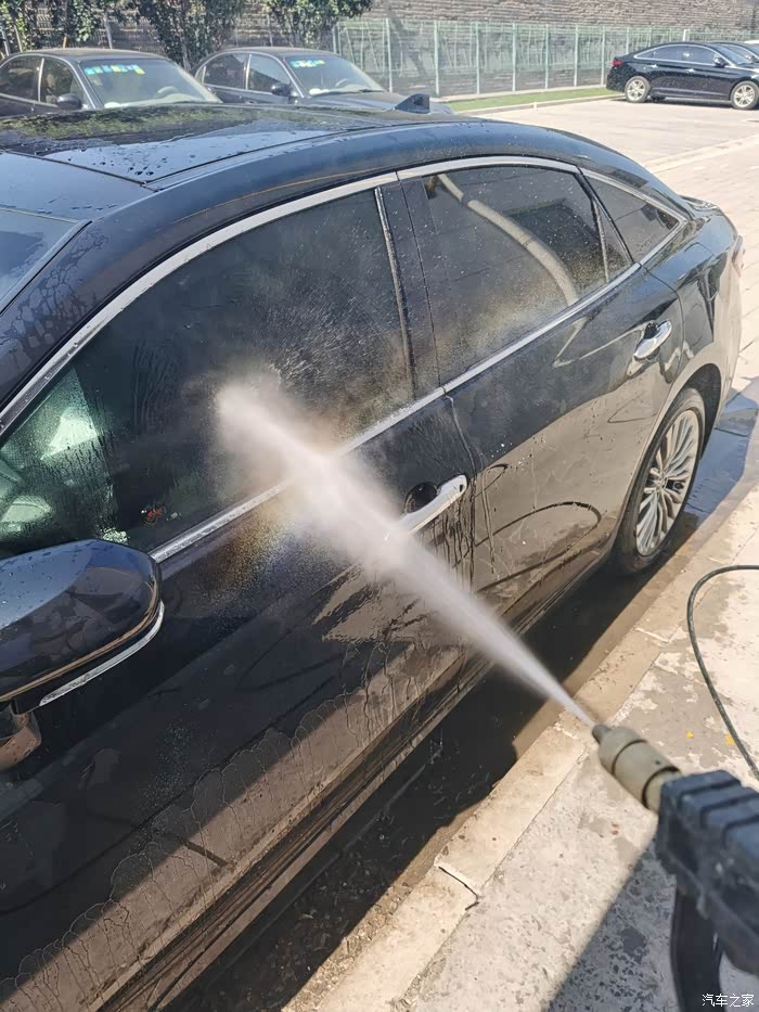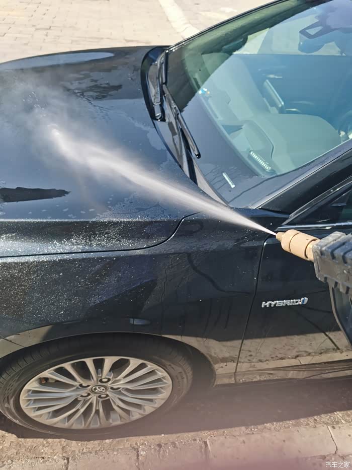 亚洲龙的车漆出厂的时候就很亮和滑,我自己洗车洗得比较勤,有时候都不给他打“肥皂”,也就是喷洗车液,之前做过镀晶,车漆硬度和亮度都很好,所以用水喷就很干净了。先从顶部冲洗,把车顶部的尘土和脏脏冲下去,顺势冲前挡风玻璃和后挡风玻璃,主要的思路是从下往上冲,有的人喜欢一面一面冲,因人而异吧,前挡风雨刷器要用手抬起来冲,把雨刷器压着的部分冲一下,雨刷器两侧也要冲,然后冲机器盖子,和大嘴,这里需要注意一下细节,亚洲龙的镀铬条和镀铬条两侧这些缝隙要着重冲冲,里面很多泥和杂志,然后冲翼子板,主驾驶侧车门,后备箱,然后到副驾驶侧,绕一圈,水枪冲洗车的时候不要直着冲,要侧着冲,斜45度个人感觉最为佳,这样不容易伤车漆,冲完之后,等水烙下之后,检查检查有没有没冲干净的继续冲,如果还是不干净,那就得喷洗车液,用自带的墩布来擦一遍了,就像人们搓澡一样,清水冲不干净,就得打浴液或者肥皂了,如果还不干净就得用搓澡巾搓泥了,洗车和人洗澡是一个道理,万物共性原则。