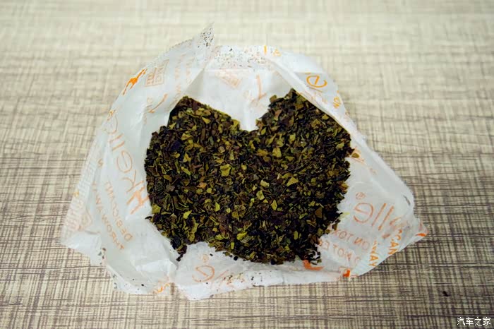 茶叶很碎,不是用来喝的,主要是用来中和杯子的塑料味道的现在打开杯子,能闻到一股茶叶味,比别的杯子一打开盖子有一股塑料味很好多,这个要点赞!
