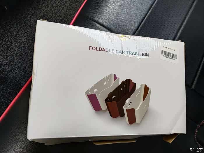 包装盒比较简陋,产品名称是贴在纸盒上的,铁摩图 车用垃圾桶