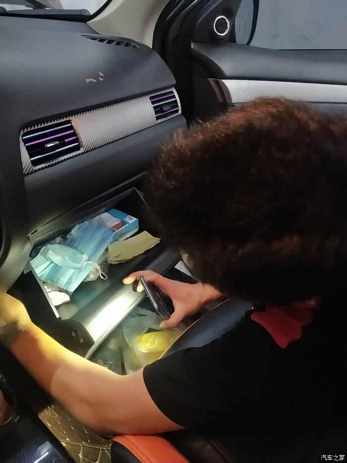 打开这个也很简单 打开副驾驶前面的储物盒把把盒子往上一抬 就取掉了,取掉之后就在这样子