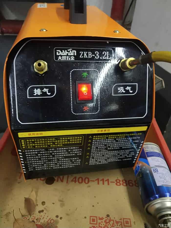 这次换氟和冷凝油是用的这个玩意换的 要先把里面的旧的油抽出来,用真空的方法,还是很专业呀 哈哈哈