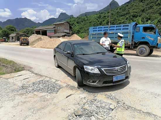 桂林市永福县江岩卡口发出预警,一辆沿G357国道由融安方向往百寿方向行驶的桂C牌小型轿车涉嫌报废。桂林市公安局永福县局交警大队当日值班组立即进行布控拦截。