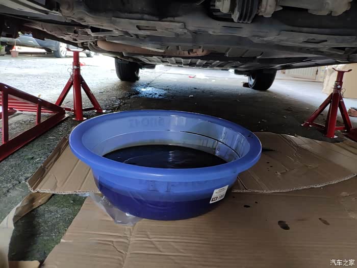 放机油先是把引擎舱的机油加注盖拧开(利用压强的原理使得机油更流畅的流出),半掩着放置好(防止异物进入发动机内)。铺好纸板,就可当“裙下之臣”啦/狗头 拆下发动机护板,利用17mm的的套筒逆时针拧松放机油螺丝,拧松后准备好容器在下方,戴好手套慢慢的拧松放油螺丝,拧到差不多要完全出来时就及时的用容器接好。待到放油口的废机油称滴状时接下来就可以拧松机滤了。方法也是也和刚刚松放油螺丝那样。
